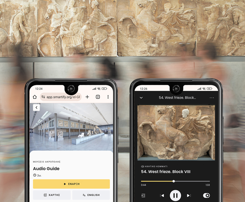 The Acropolis Museum offers its visitors a unique, free digital experience, developed in collaboration with Smartify. The Museum’s digital guide offers personalized, interactive access to its permanent collections and serves as the ideal tool for individual visitors, families, and international travelers. Using their personal smart devices, visitors can explore the exhibits in an interactive and user-friendly way, enriching their experience within the Museum’s exhibition areas.