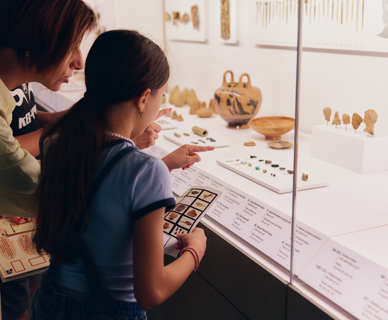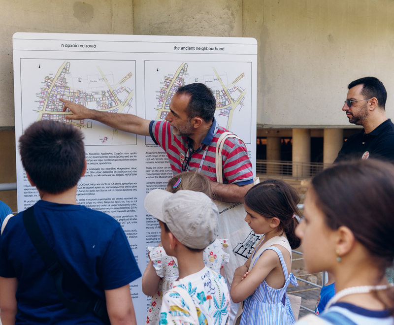 Ένα εικονικό ταξίδι στον χωροχρόνο φέρνει τα παιδιά και τους κηδεμόνες τους στην αρχαιολογική ανασκαφή κάτω από το Μουσείο. Οι συμμετέχοντες με βοηθό τη φαντασία και την παρατηρητικότητα τους, καλούνται, με την καθοδήγηση του αρχαιολόγου, να αναζητήσουν και να συγκεντρώσουν τα απαραίτητα στοιχεία για να βοηθήσουν την οικογένεια από το παρελθόν να ξαναβρεί τα αγαπημένα της δωμάτια και αντικείμενα. Μόλις η αναζήτηση ολοκληρωθεί τότε αρχίζει το παιχνίδι στο εκπαιδευτικό κέντρο του Μουσείου.